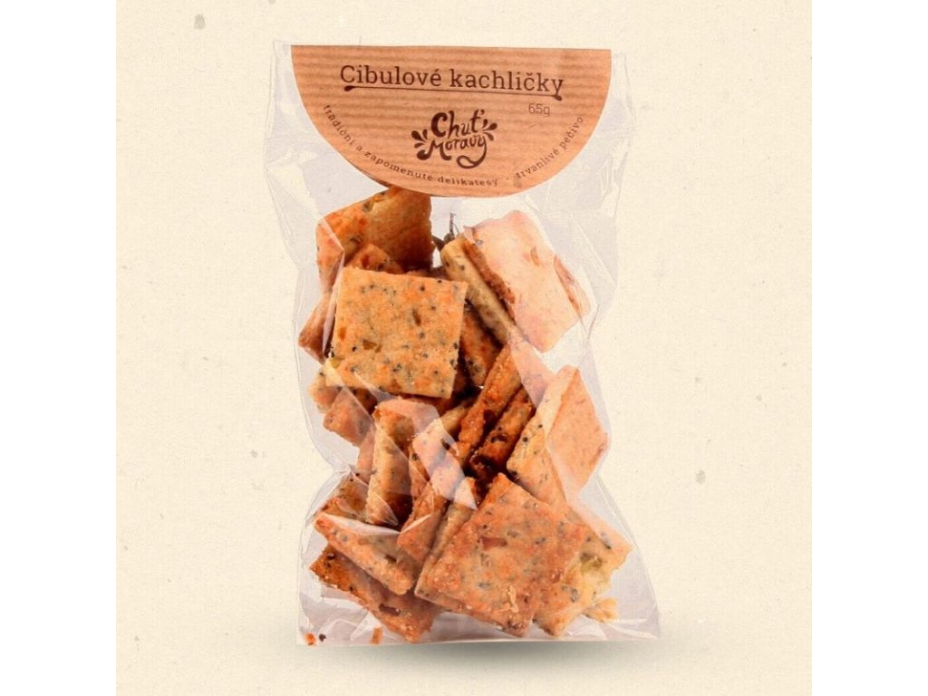 Pšeničná mouka, sýr, máslo mlékárenské, cibule 14,4 %, vaječný žloutek, mák, sůl, worcestrová omáčka (voda, cukr, ocet, jedlá sůl, víno, švestková povidla (švestky, jablka, cukr, kyselina citrónová), směs koření, barvivo (E150c), rajčatový prášek, aromata, chilli extrakt, česnekový extrakt, cukr, pepř, kypřící prášek, soda.